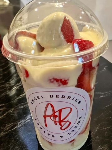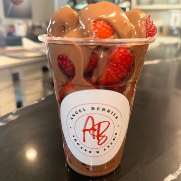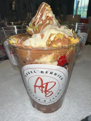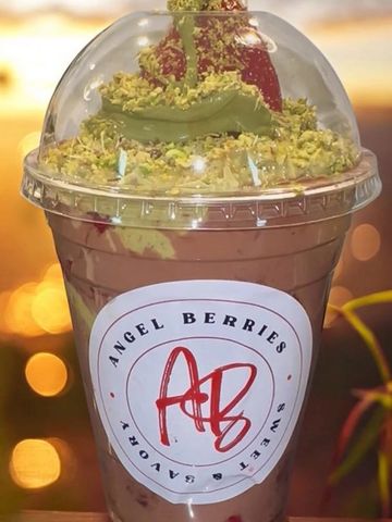 A luxurious twist on a classic dessert—this indulgent treat features fresh, juicy strawberries nestled over a bed of crispy, golden Kadaifi, layered with silky pistachio cream and sprinkled with crushed pistachio nuts for an irresistible crunch. To top it all off, it's generously drizzled with hot Belgian milk chocolate, creating a rich, melty finish that brings it all together.